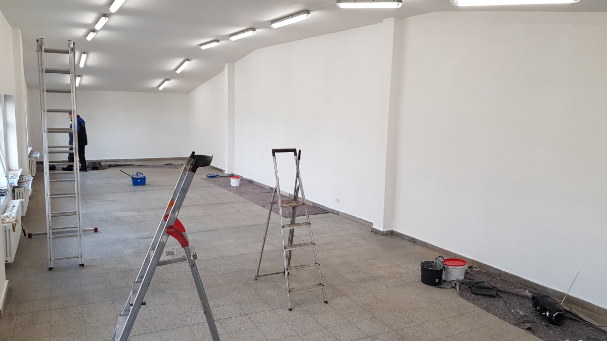 Auch am Lokschuppengebäude tut sich einiges. Vor einigen Wochen haben wir den ehemaligen Umkleideraum und die dazugehörigen Sozialräume am südlichen Lokschuppengiebel wieder in Besitz nehmen können. Diese Räume waren in den letzten Jahren anderweitig genutzt. Hier sollen nun ein großer und ein kleiner Ausstellungsraum entstehen. Außerdem wird ein neuer Übernachtungsraum mit Toilette und Waschgelegenheit eingerichtet. Die Arbeiten sind bereits weit fortgeschritten. Es wurden energiesparende Lampen angebracht und der große Ausstellungsraum ist bereits gestrichen.