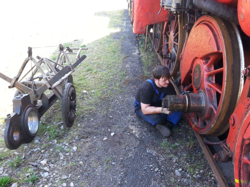 In the last few days, members have had their hands full. The maintenance work on various vehicles went into the final round so that the locomotives would be ready for operation for our forthcoming event at the beginning of May. The main boiler inspection on 50 3570 was completed, while the connecting rods, which transmit the power from the steam cylinders to the driving axles, also still had to be mounted.