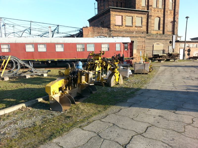 Die ersten Vorbereitungen auf die Reparatur des Gleises unter unserer Besandungsanlage wurden getroffen. Diese sind notwendig, weil die hier verbauten Holzschwellen langsam in die Jahre kommen und verrotten. Das führt leider dazu, dass die Abstände zwischen den Schienen nicht mehr dem geforderten Maß von 1.435 mm entsprechen. Das kann zum Entgleisen von Schienenfahrzeugen führen, die über die abgängigen Stellen fahren. Um die Sicherheit weiterhin zu gewährleisten, wird das Gleis ab Montag, den 18.2., aufgenommen und gebrauchte Betonschwellen eingesetzt. Auch wenn es sich nur um eine relativ kleine Baustelle handelt, muss jede Menge Technik aufgeboten werden, die bereits auf unser Gelände gebracht wurde.