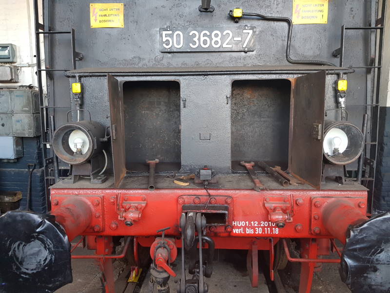 Nachdem diese Lok unter Dampf stand, wurde sie an die 01 509 gekuppelt und die Heizleitungen der beiden Lokomotiven wurden verbunden. Auf dem folgenden Bild sieht man die Heizleitung unter den Puffern zwischen den beiden Lokomotiven