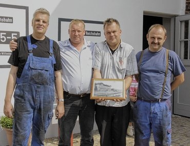 Als Dankeschön für die Einladung übergaben die H6-Freunde ein altes Foto des Lenzener Bahnhofs an den Lokschuppenverein. |