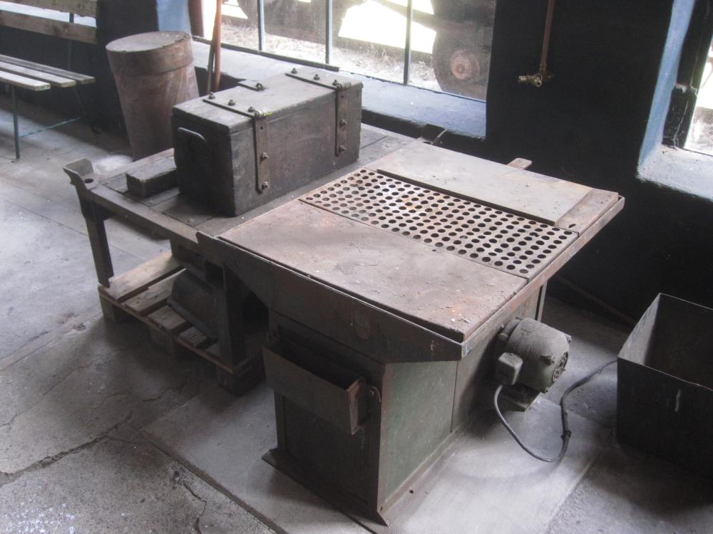 To the rear of the loco shed, it has meanwhile been possible to recreate two typical work stations for locomotive fitters. On one side there is a welding table, on which metal parts were fabricated. The hazardous vapours which are produced when welding work is being done were drawn through the perforated panels on top of the table by a suction blower and exhausted outside the building,