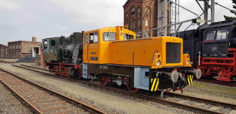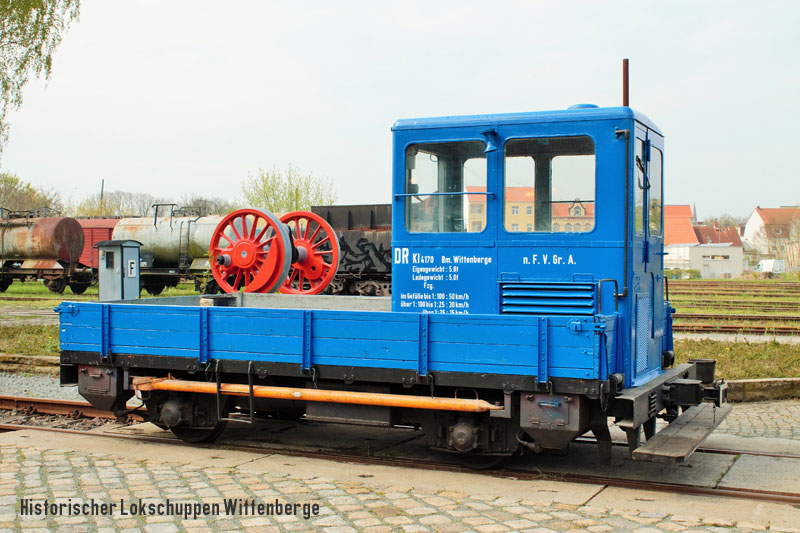 Sonstiges Fahrzeug Schwerkleinwagen Typ SchöneweideDieses Fahrzeug, kurz Skl genannt, ist ein Fahrzeug, das in den 60er Jahren speziell für die Bahnmeistereien entwickelt wurde. Es hat eine geschlossene Fahrerkabine, in der auch der Vierzylinder-Dieselmotor untergebracht ist, und eine große Ladefläche, auf der Werkzeuge und Ersatzteile für die Strecken- und Signalinstandhaltung gelagert werden konnte. Für diese Fahrzeuge gab es diverse Zurüstteile, wie zum Beispiel einen aufsetzbaren Teleskopkran sowie Anhänger zur Vergrößerung der Ladekapazität. Unser Fahrzeug diente bis 1994 der Bahnmeisterei Jerichow und konnte nach deren Auflösung durch den Verein übernommen werden. |