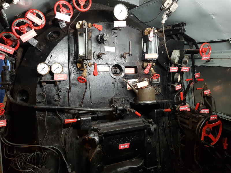 The cab of steam locomotive 50 3624 was prepared for visitors. For example, all the controls on the cab have been marked and the lighting has been added. In addition, a friendly mannequin in a fireman's uniform invites visitors to enter the cab.