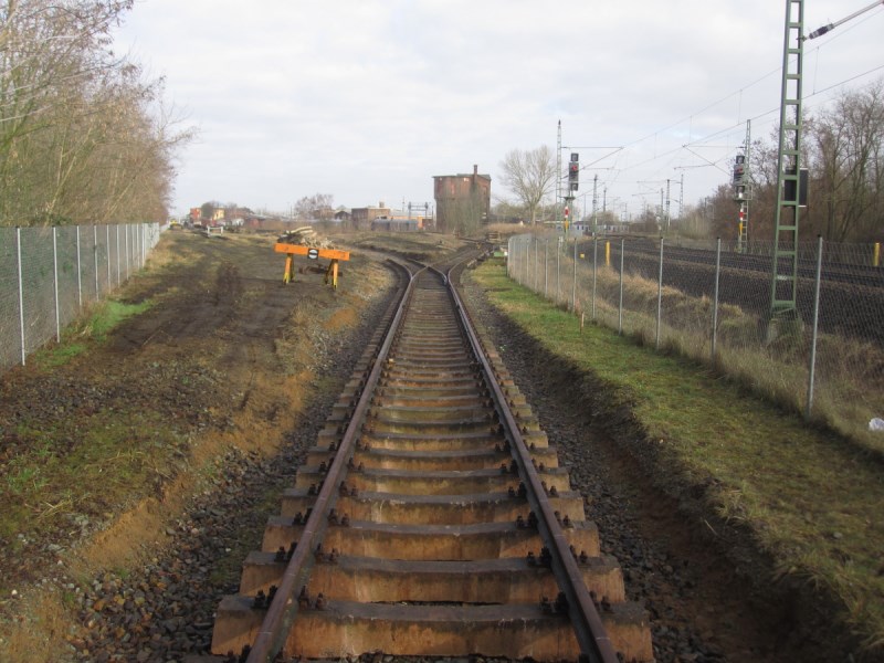 Anschluss zu dem Gleis, das in der Bauphase 2 in Richtung Bahnhof verlegt werden soll.