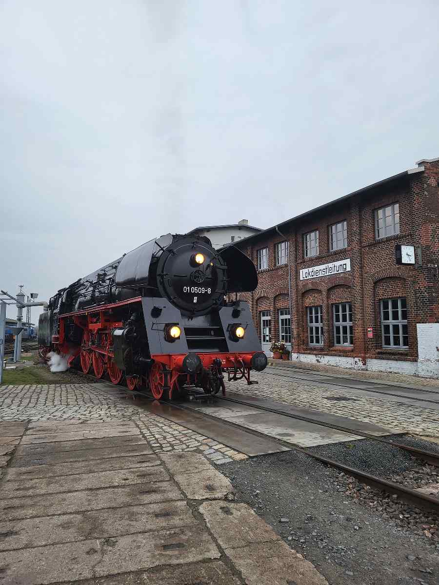 Wir erinnern uns außerdem an den ein oder anderen Star auf unserem Betriebsgelände und danken allen Mitwirkenden, dass so manch lang gehegter Wunsch in Erfüllung gehen konnte. Hier die 01 509 der Pressnitztalbahn.