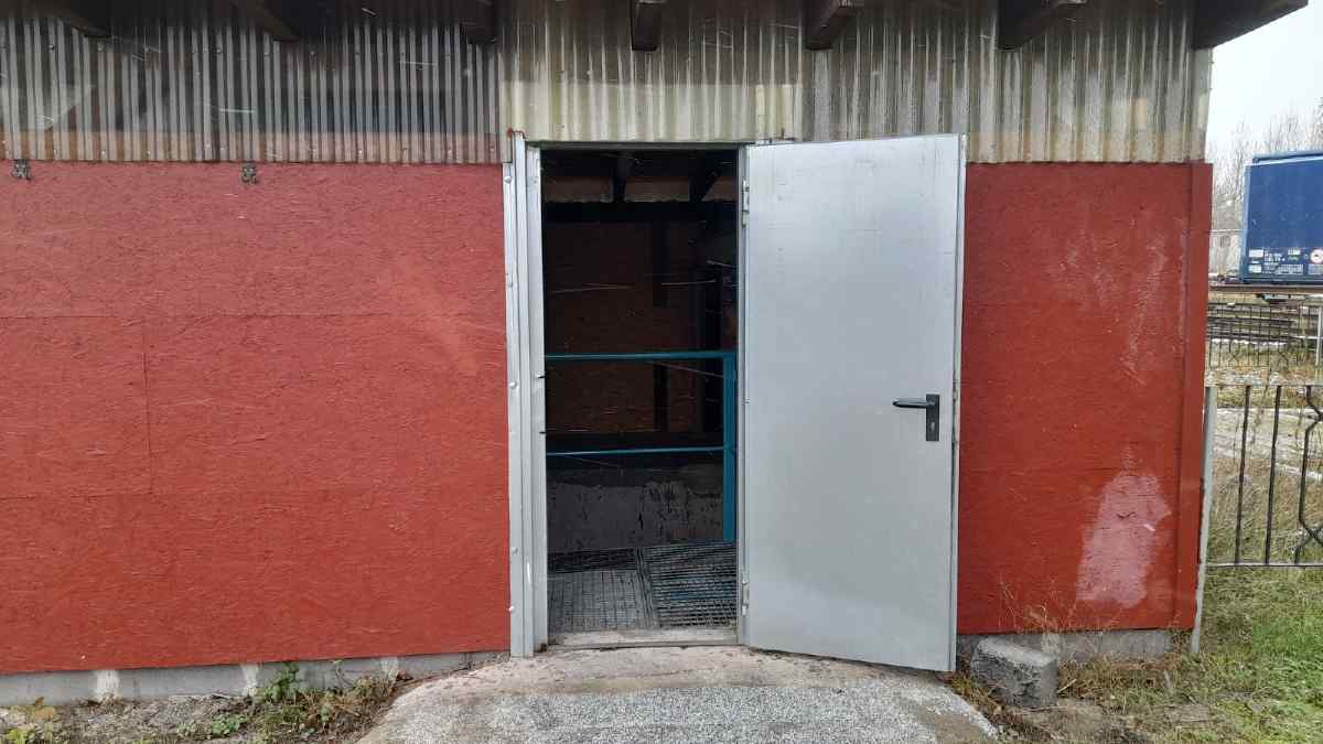 Oberhalb der Zwischendecke erreicht man den Vorratsbehälter. Eine weitere Treppe führt nach oben zum oberen Rand des Behälters