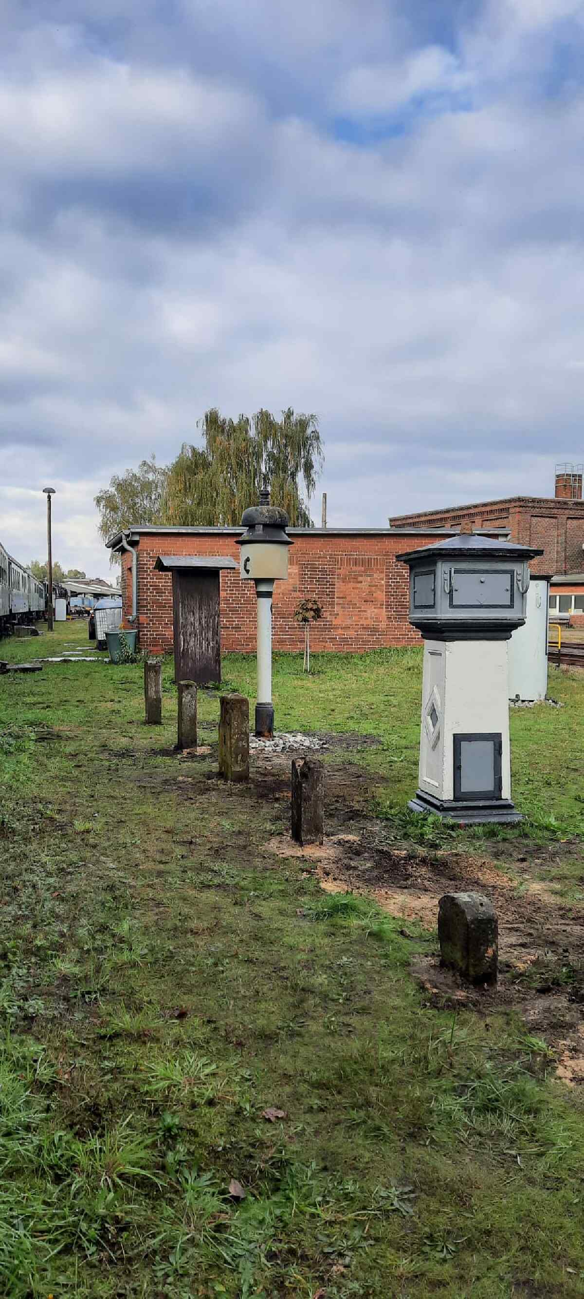 Am Sonntag fand dann der bundesweite Tag des offenen Denkmals statt. Auch hieran haben wir uns beteiligt und konnten etlichen Besuchern über unsere Aktivitäten zum Erhalt unseres Denkmals berichten. Heute können wir auch über eine weitere kleine Sensation berichten. Zwar ist leider der bekannte Stendaler Fachbuchautor und Eisenbahnliebhaber Wolfgang List vor einiger Zeit verstorben. Wir konnten uns aber mit der Familie dahingehend verständigen, dass unser Museum die umfangreiche Sammlung von Läutewerken übernimmt und ausstellt. Dabei handelt es sich um diverse, teilweise telefonzellengroße Geräte, die vor der Digitalisierung der Eisenbahn der Meldung von ankommenden und abgehenden Zügen per Morsezeichen dienten. Wolfgang List hatte solche Anlagen aus etlichen Teilen Deutschlands vor der Verschrottung bewahrt und in seiner Privatsammlung funktionsfähig restauriert. Nun bekommen die Teile in Wittenberge ihren würdigen Platz. Wir danken den Angehörigen noch einmal sehr herzlich für ihre Bereitschaft, uns die Sammlung zu übergeben. Wir haben vor einigen Tagen mit der Aufstellung der großen Ausstellungsstücke in unserem Freigelände begonnen.