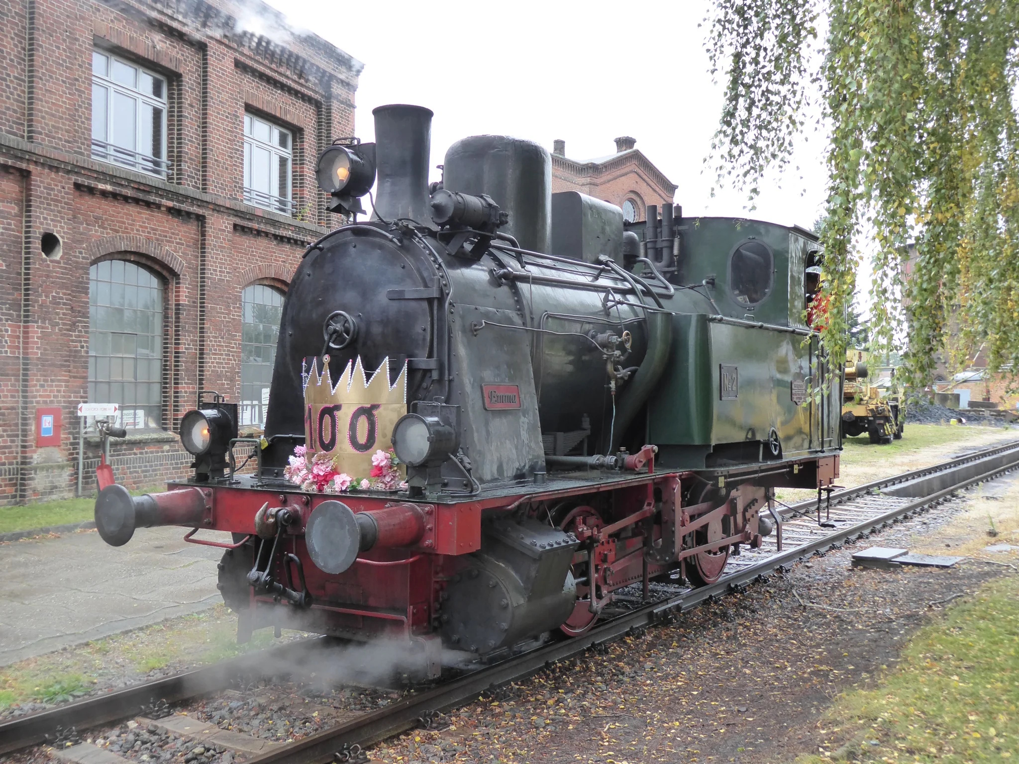 Dampflok „Emma“ feiert 100. Geburtstag mit Blumenschmuck und Krone